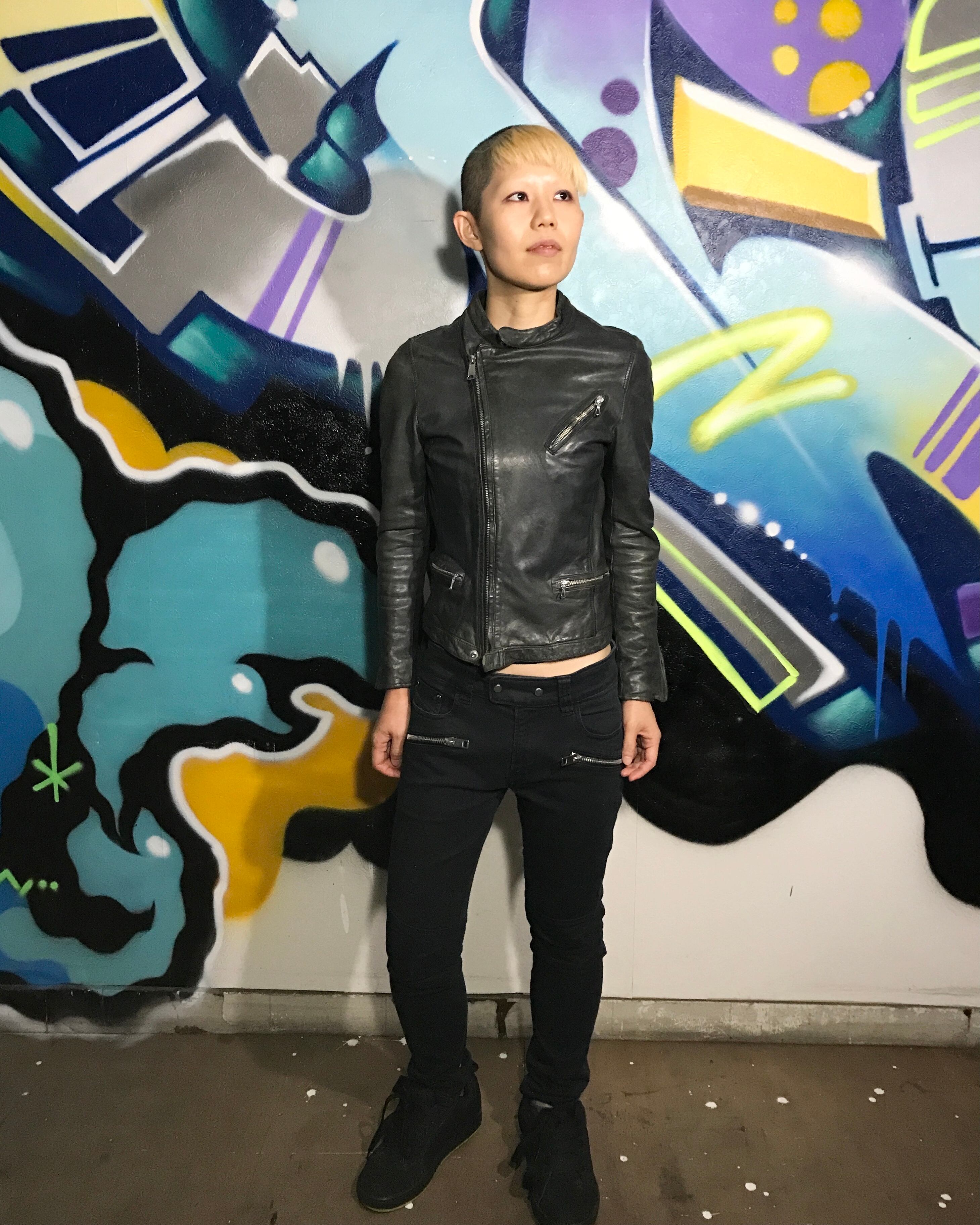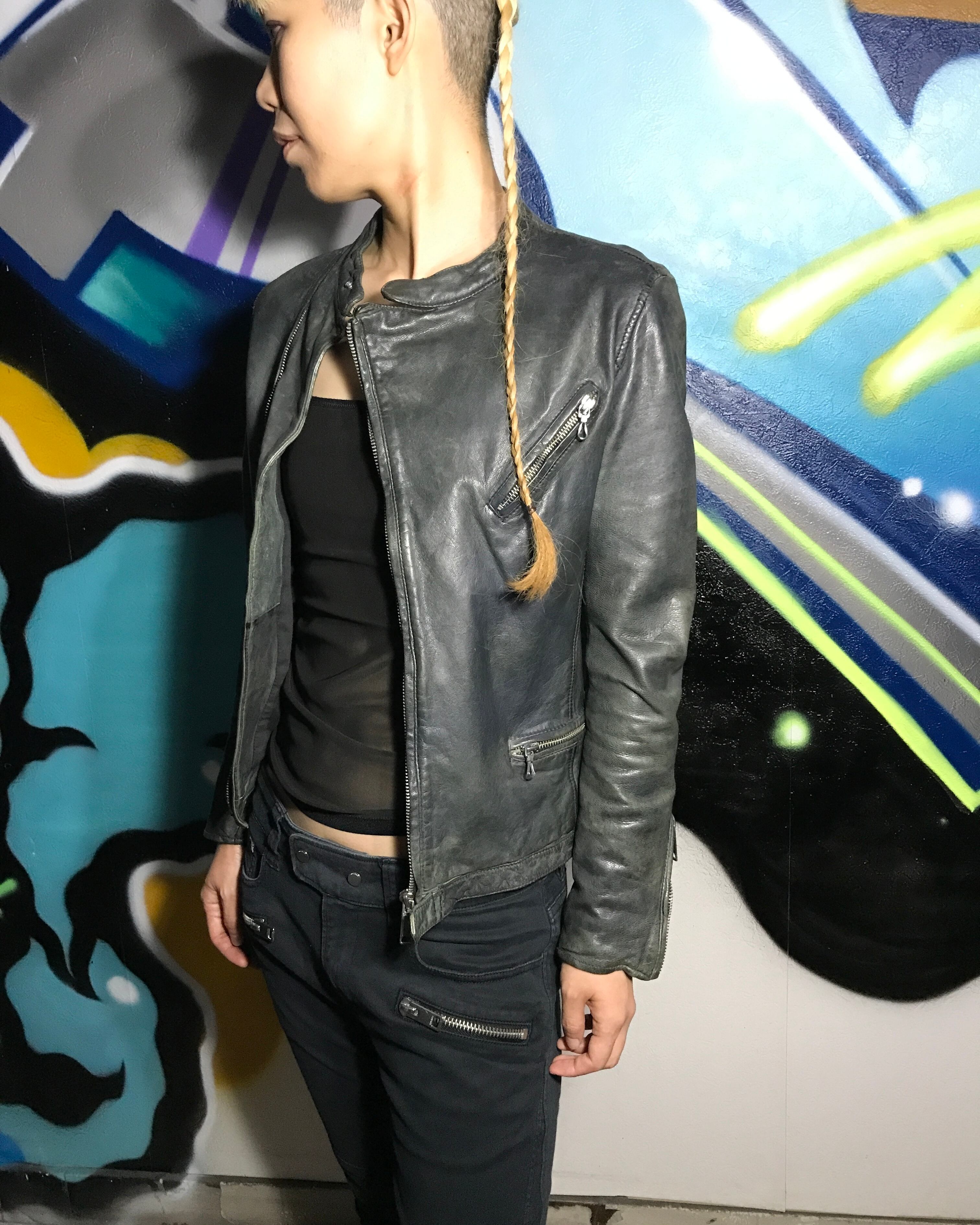 本革(山羊革)のライダースジャケット。
