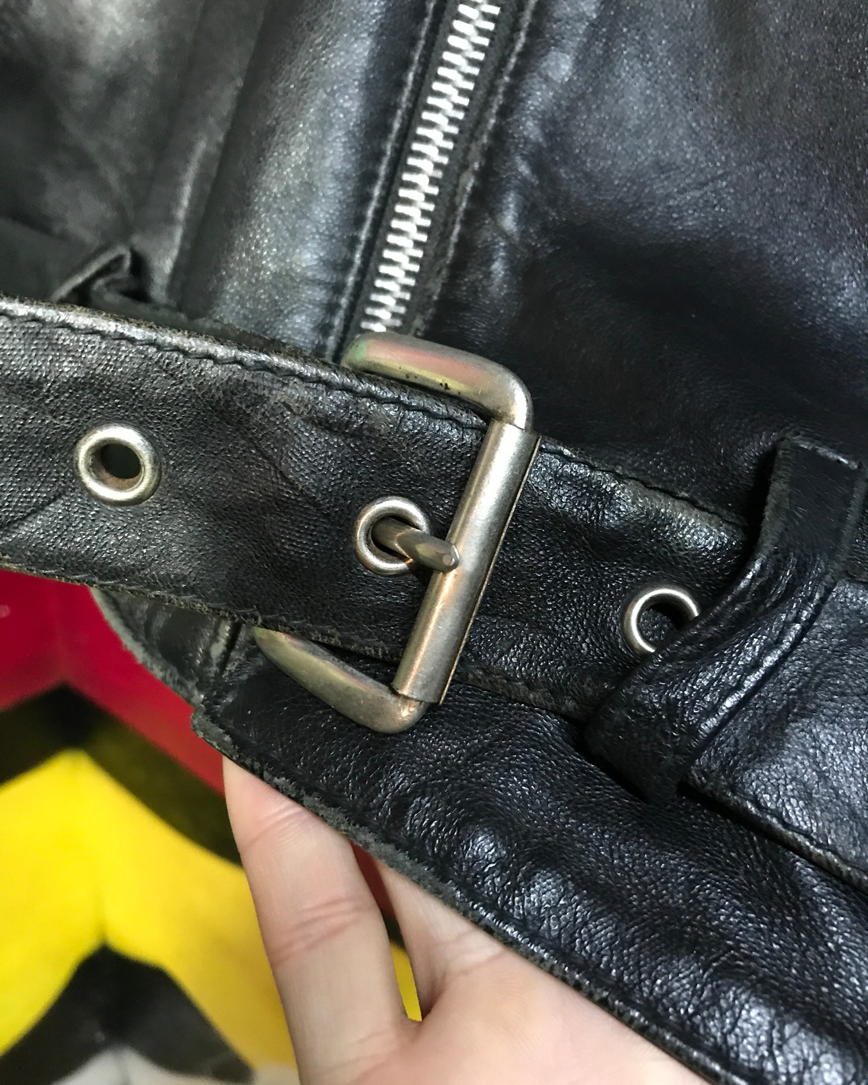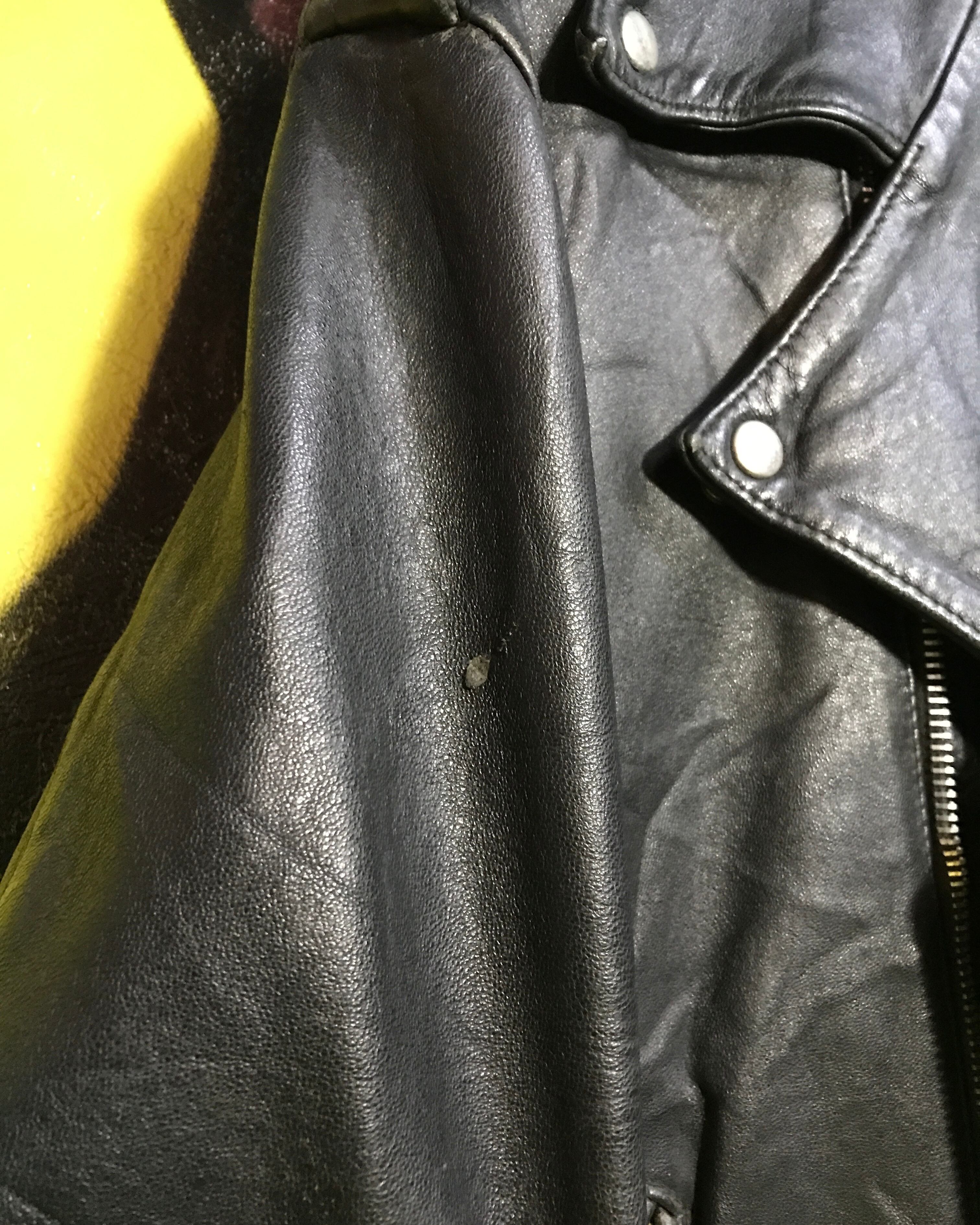 またジップやボタン跡がレザー表面についてしまっている箇所がいくつかあります。