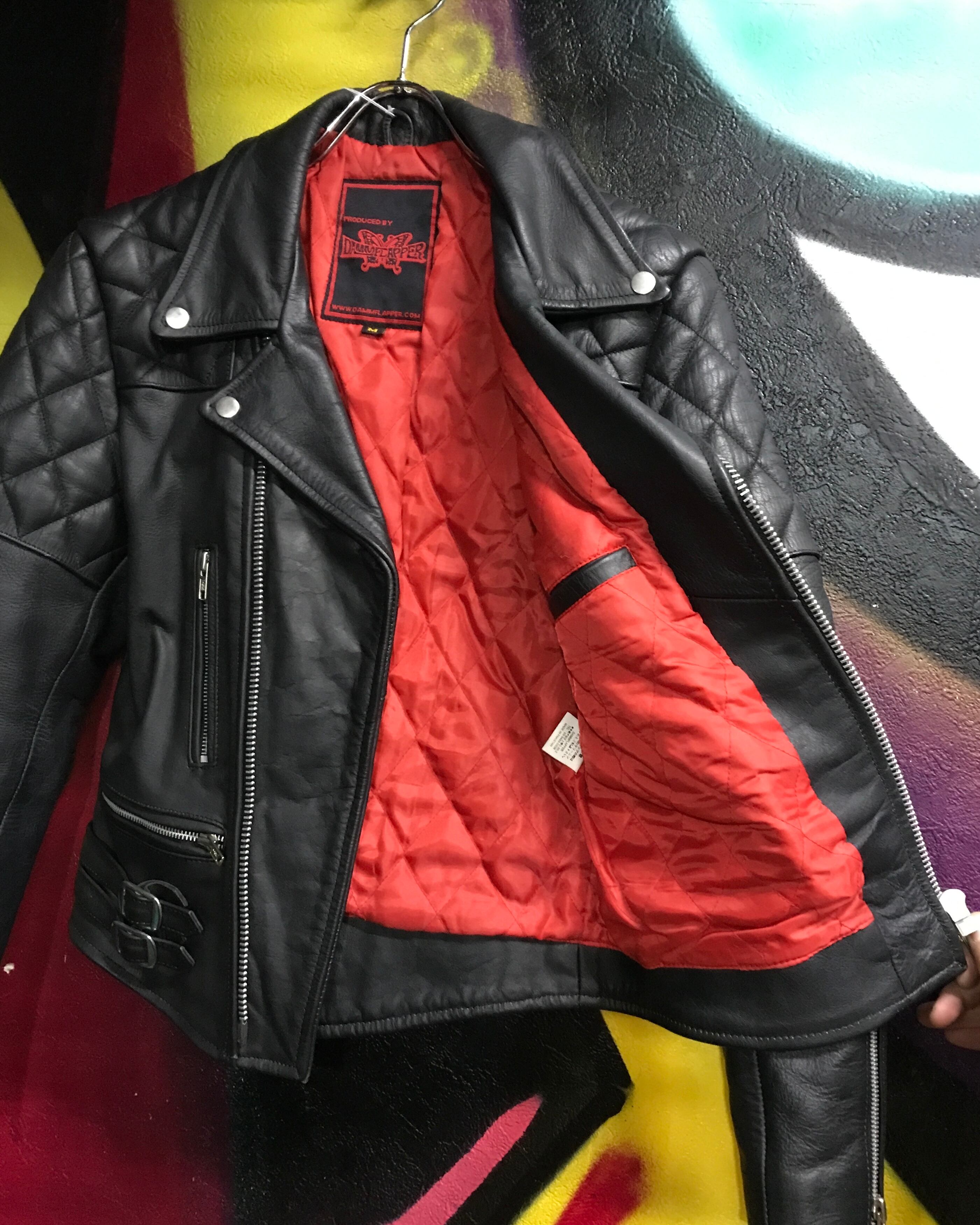 パンク、ロック系ファッションにも定番の「ロンジャン」タイプのダブルライダースジャケット。