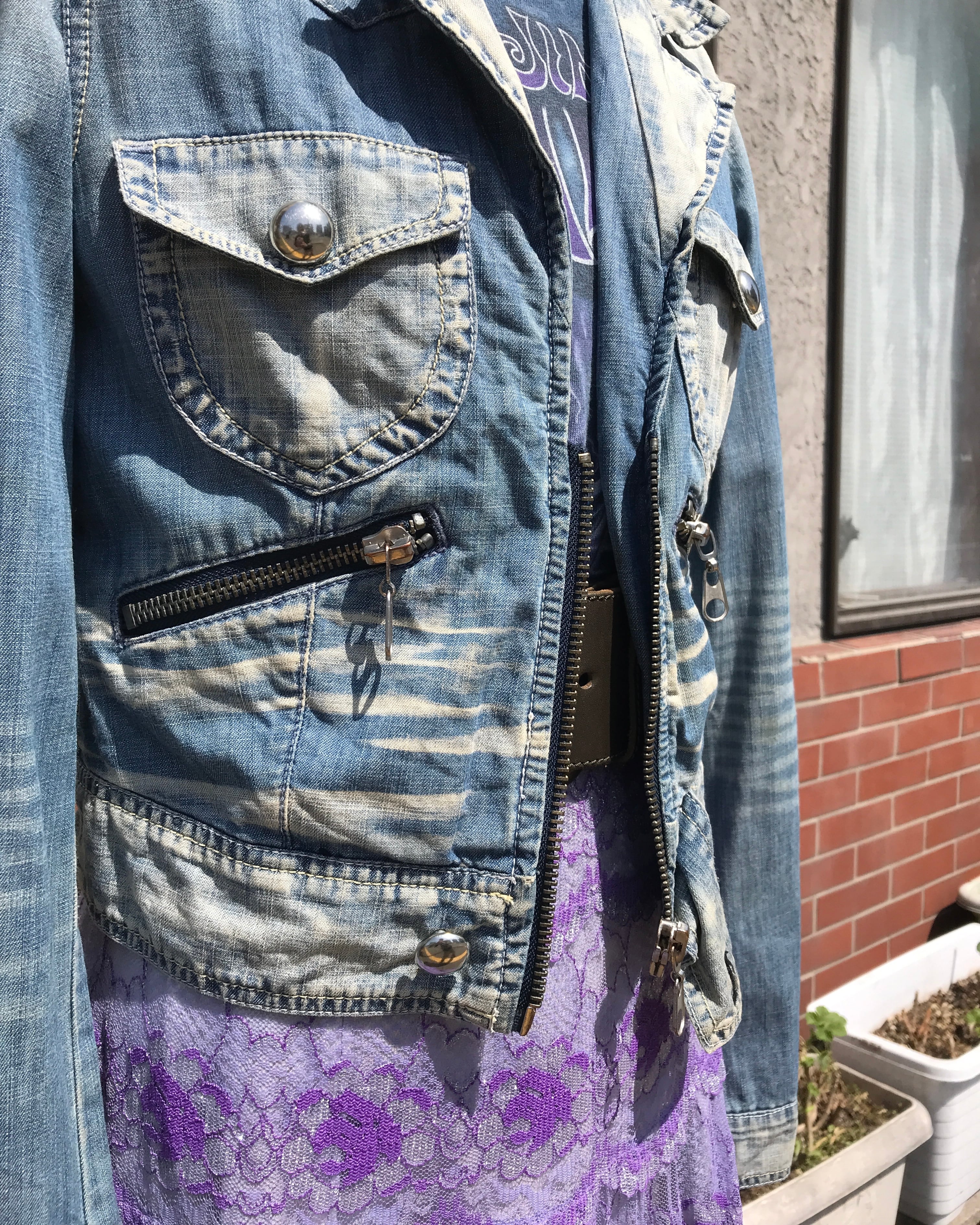 size S Zip Design Denim Jacket - Y2K | 古着屋border