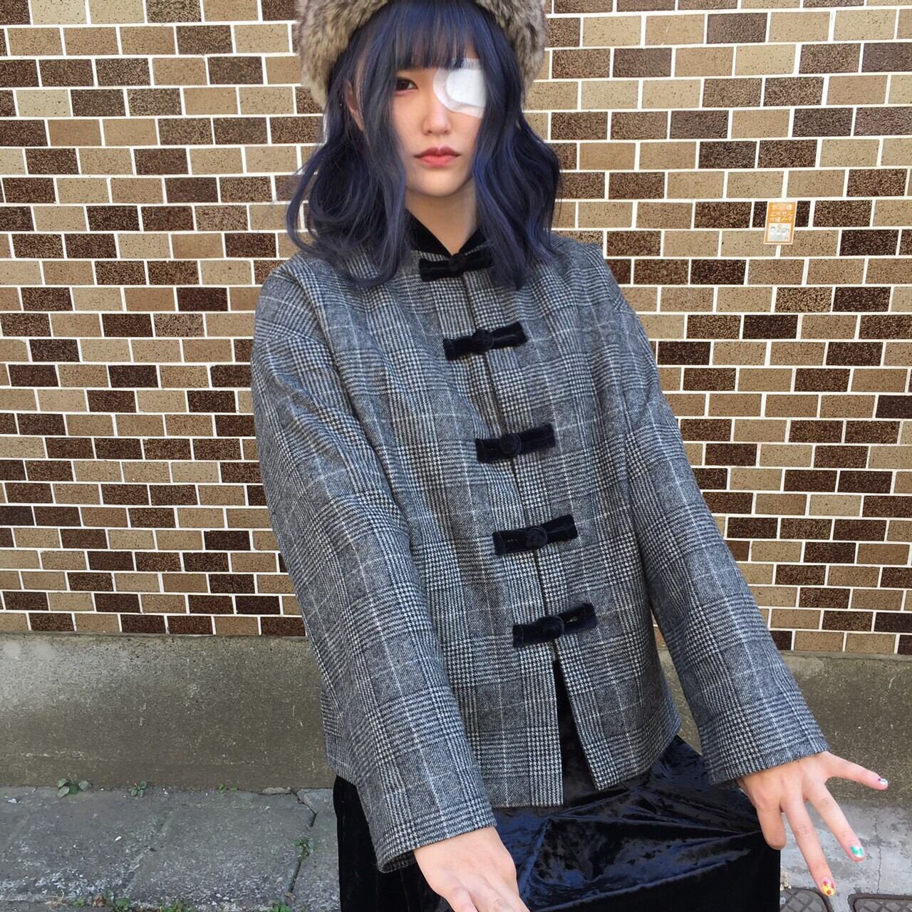 モノトーンでチェックのチャイナジャケット。