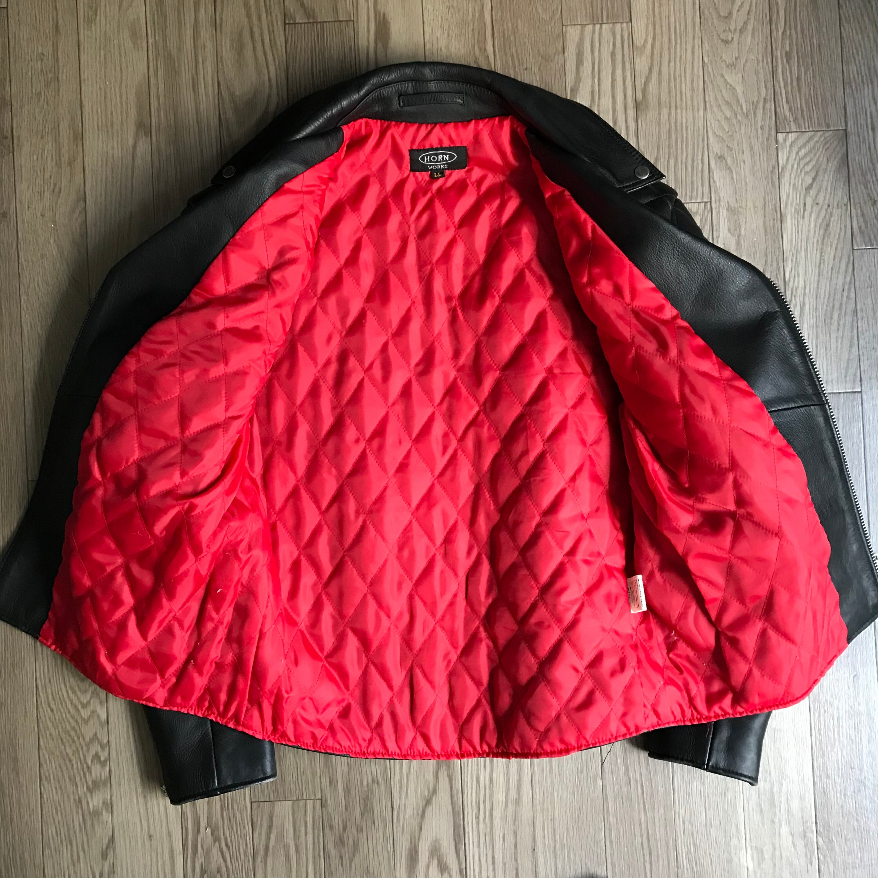 肩幅とヒジにパッド付きのライダースジャケット。