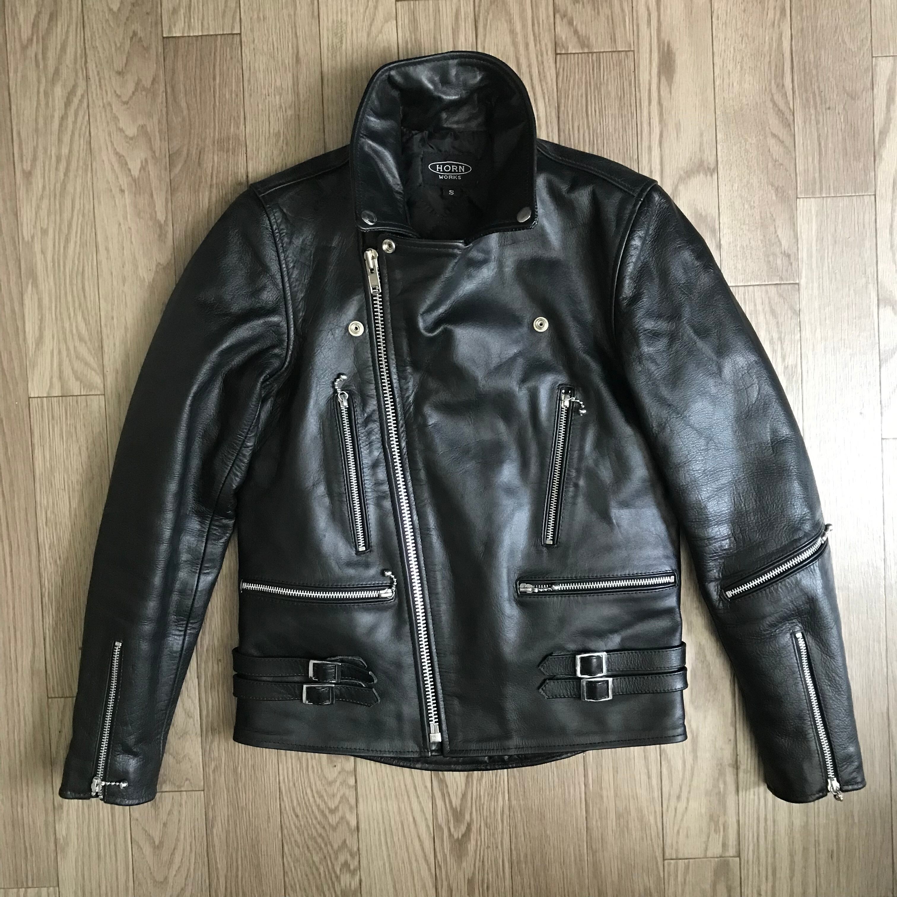 背面スリーパネル、サイドベルト、ダブルのライダースジャケット。
