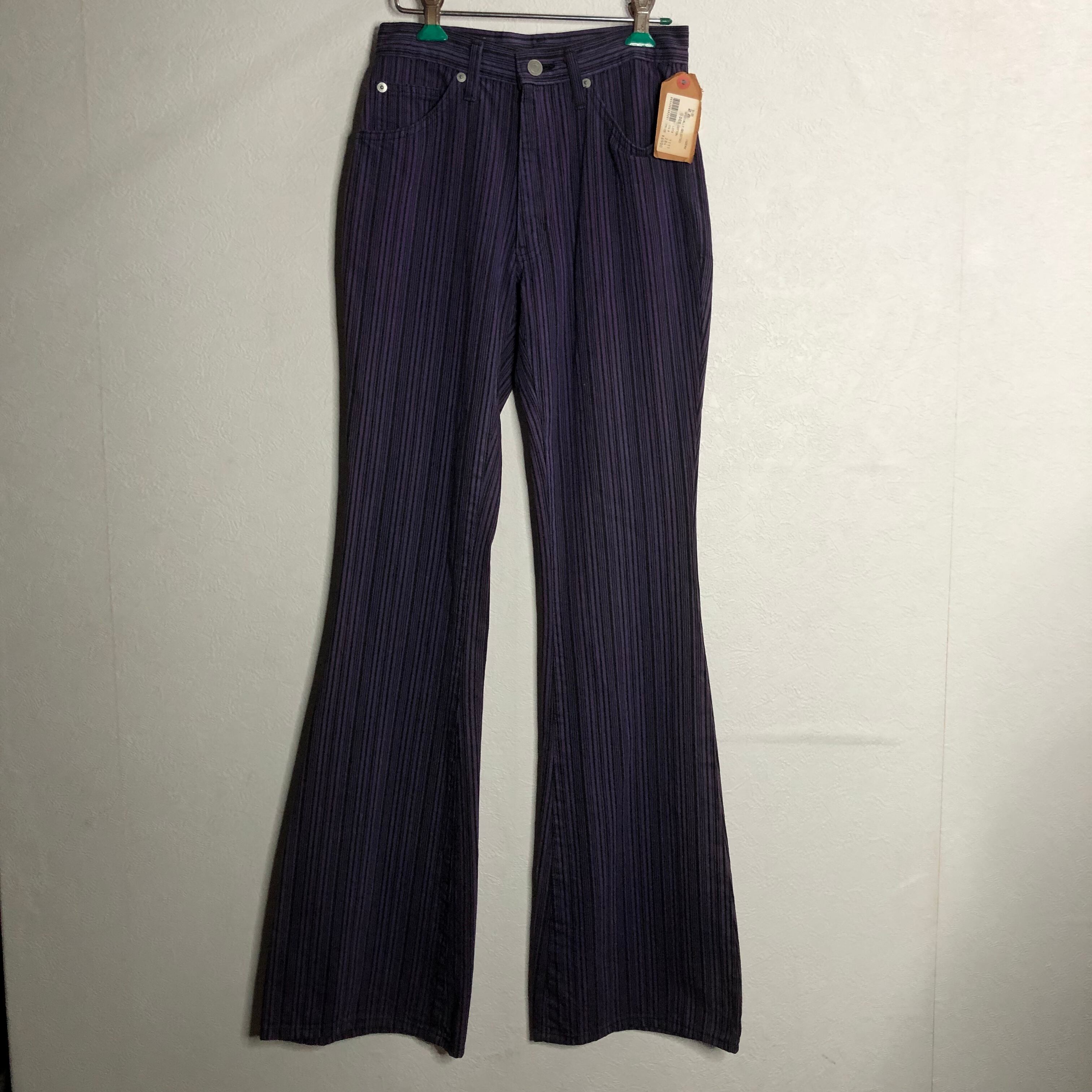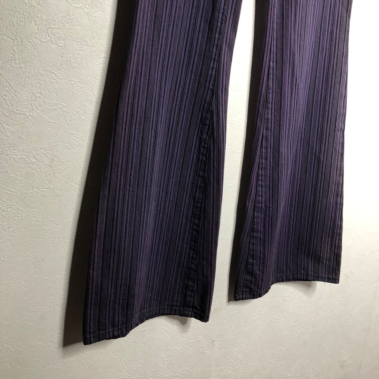 紫のストライプのブーツカット。