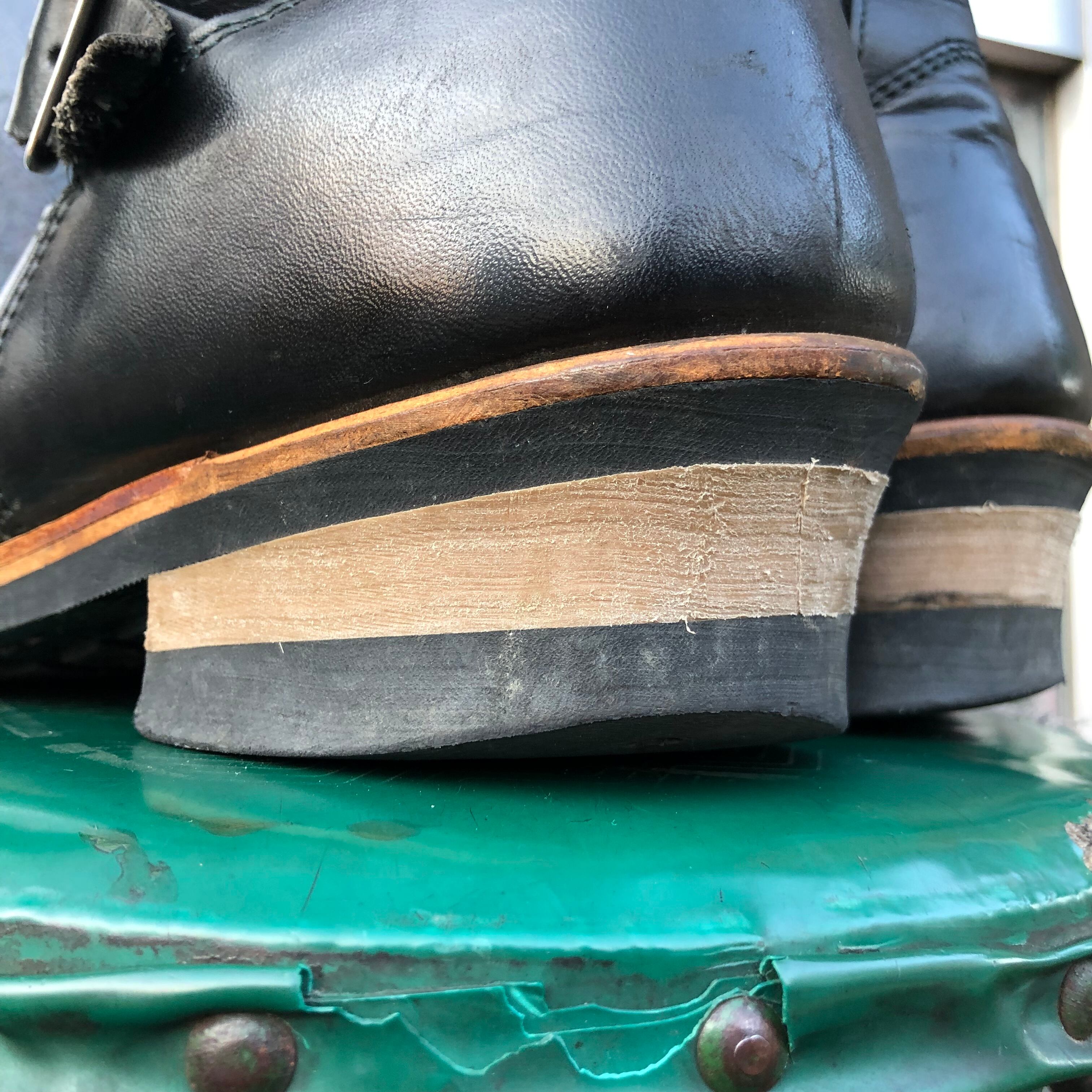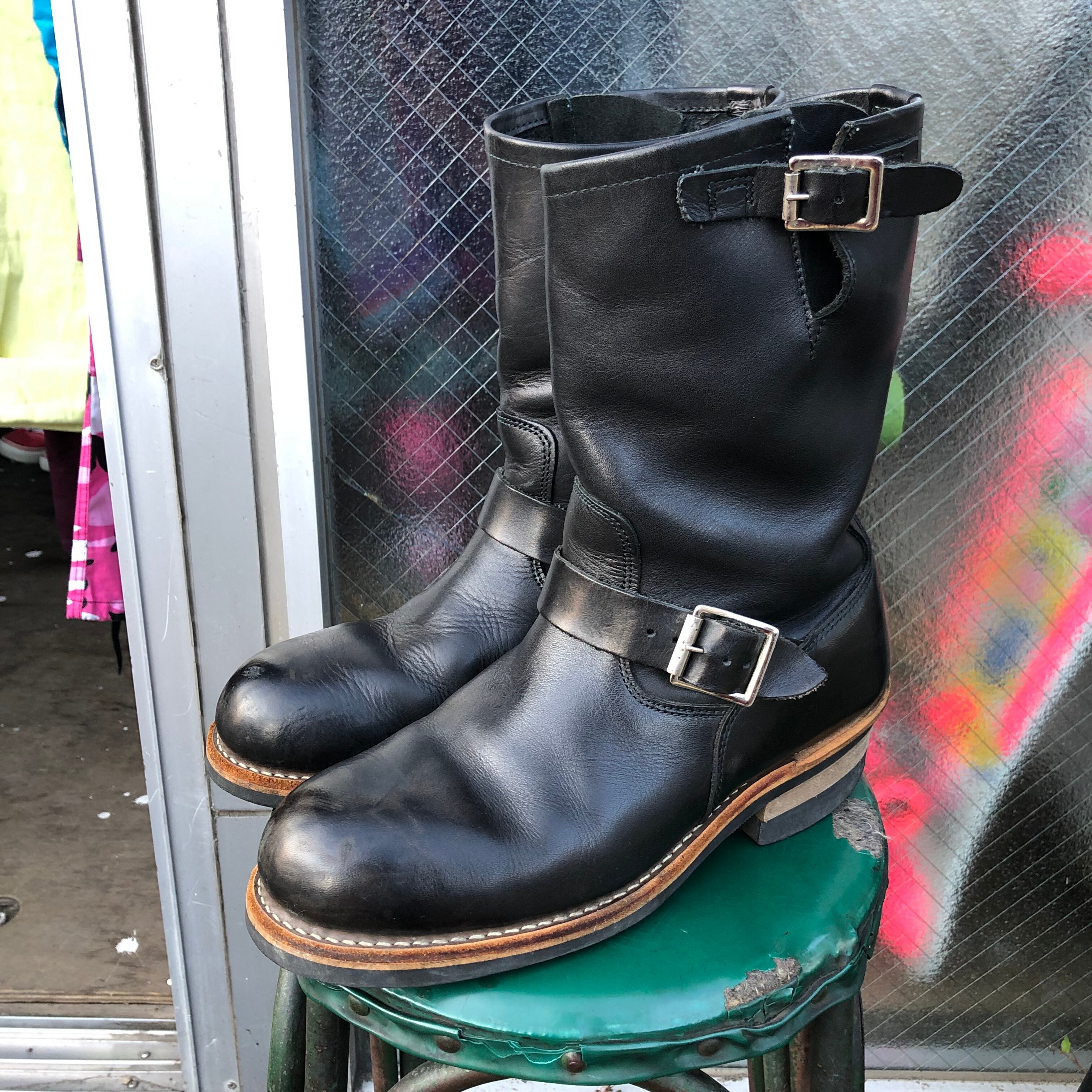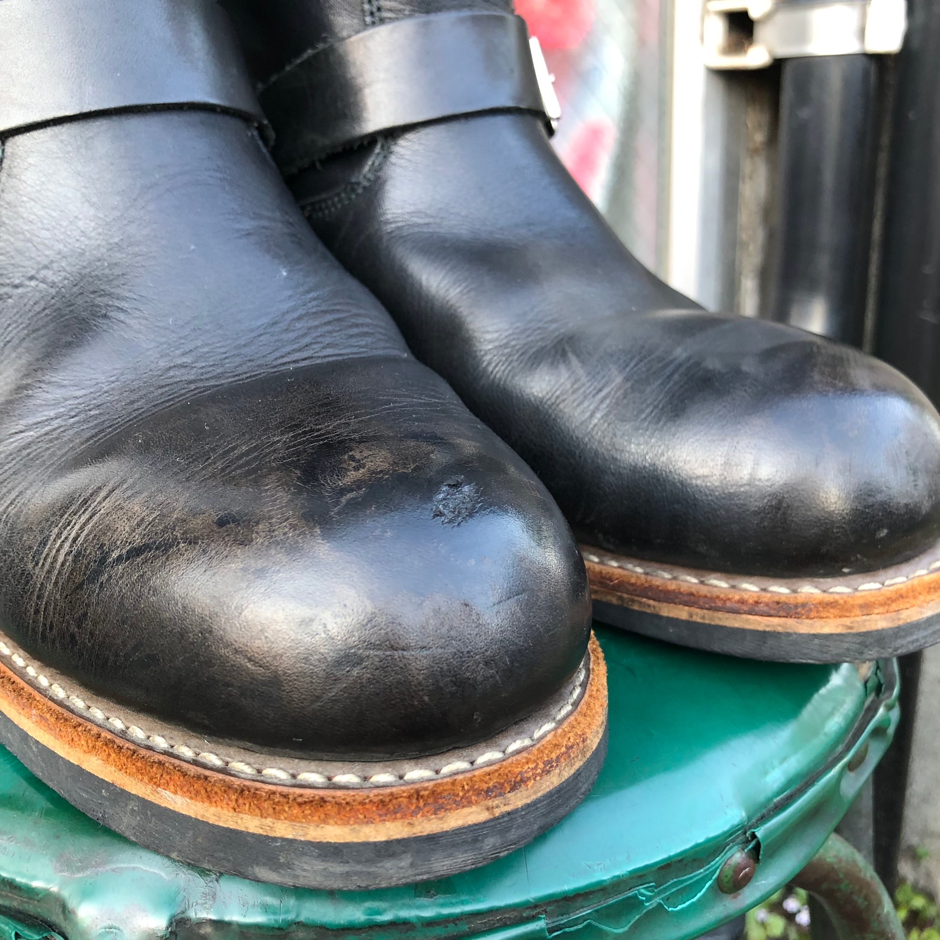 爪先に鉄芯入りのエンジニアブーツ。