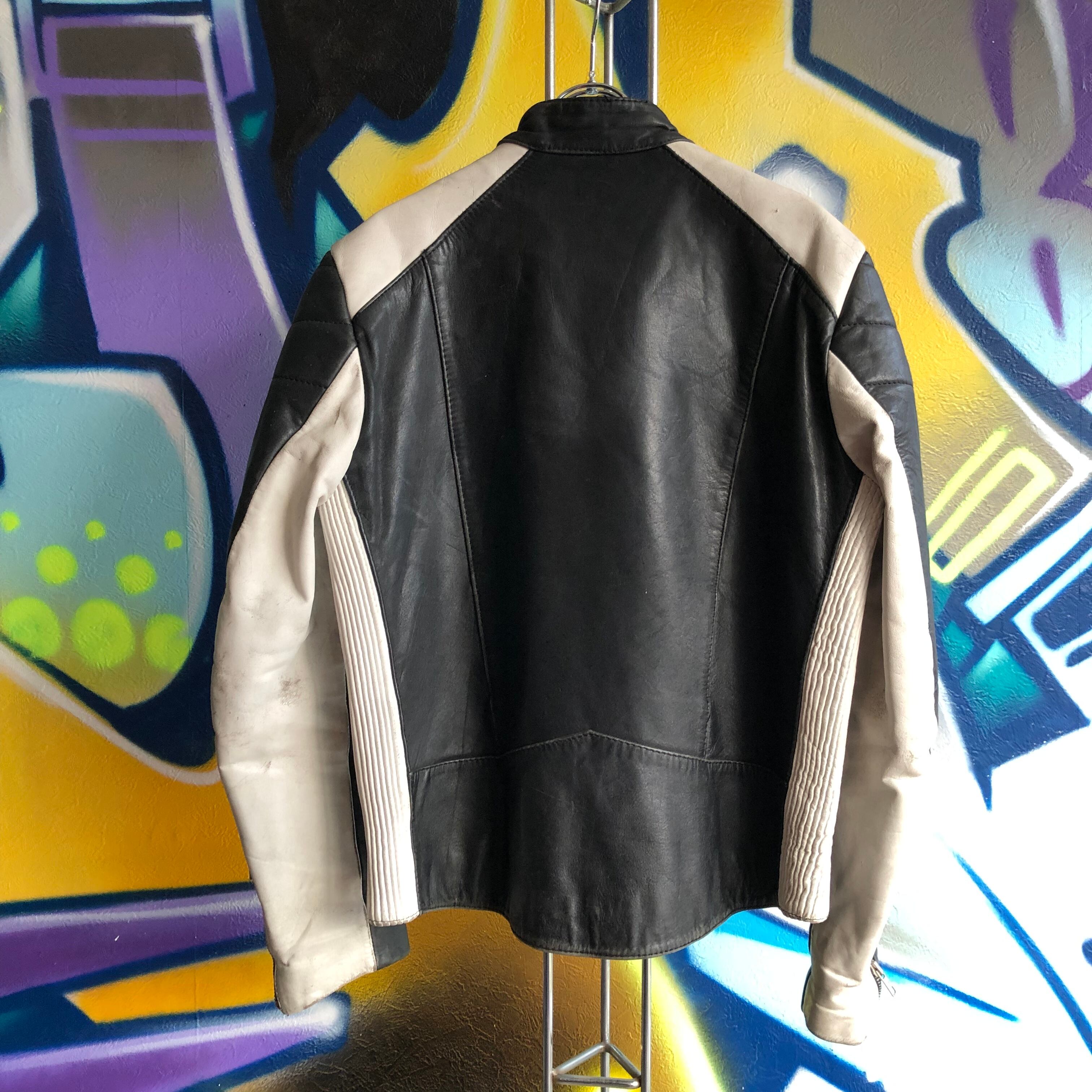 バイカラーのライダースジャケット。
