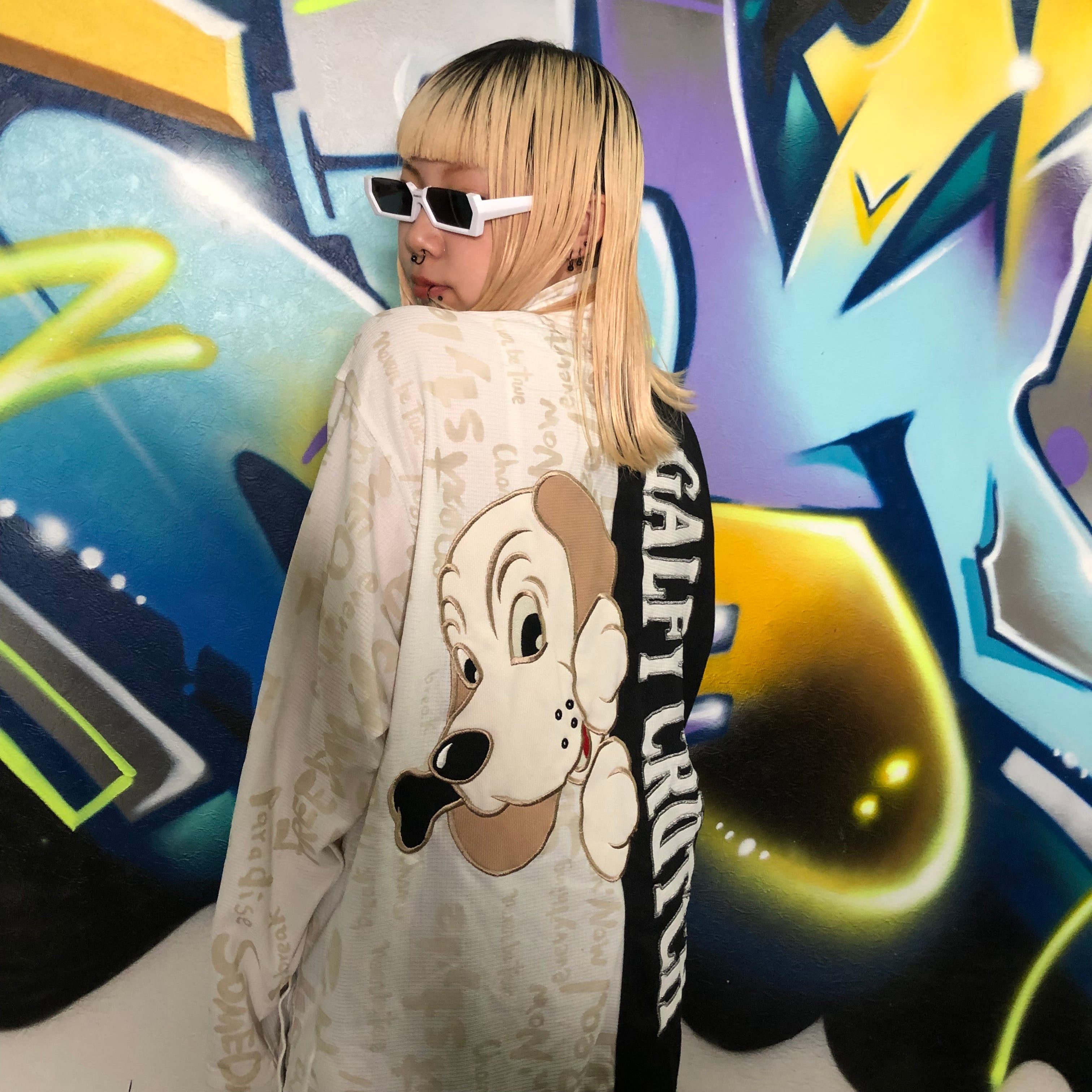 肩幅52 身幅60 着丈76 袖丈58 表記サイズF モデル身長154cm 当時モノのガルフィー。 リアル平成ストリート。