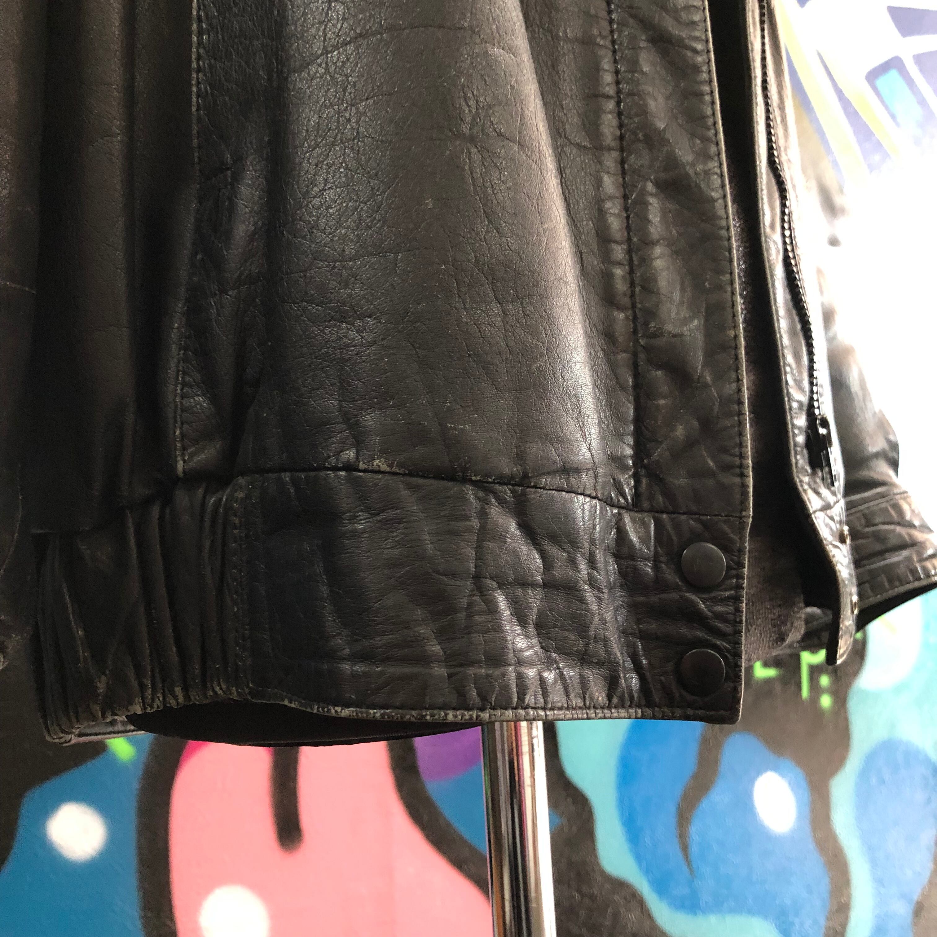 ぜんたいに丸っこいカタチになる、レトロ感たっぷりのレザーブルゾン。