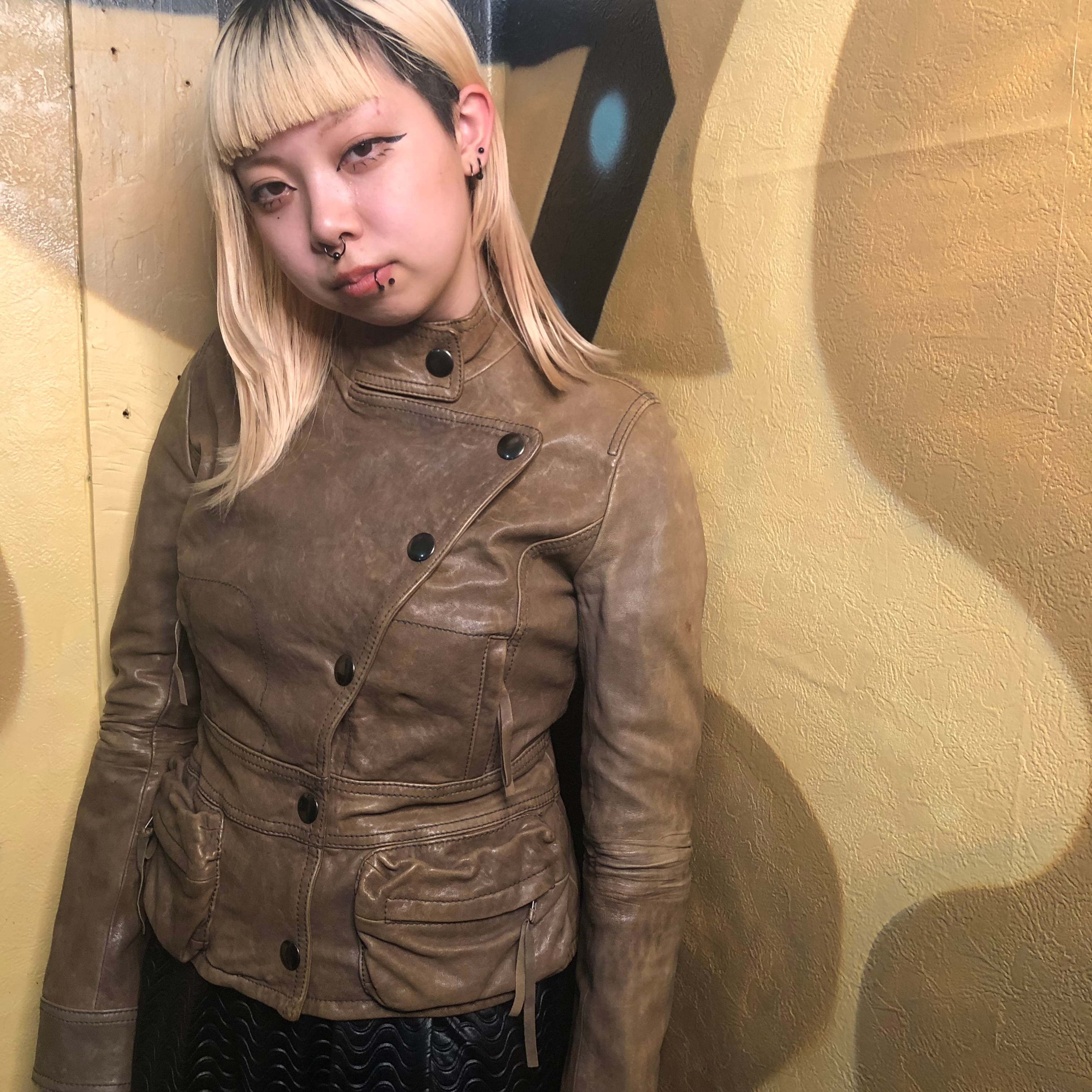 オートハッピーのダブルのライダースジャケット、レザージャケット。
