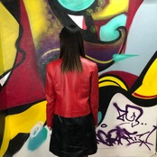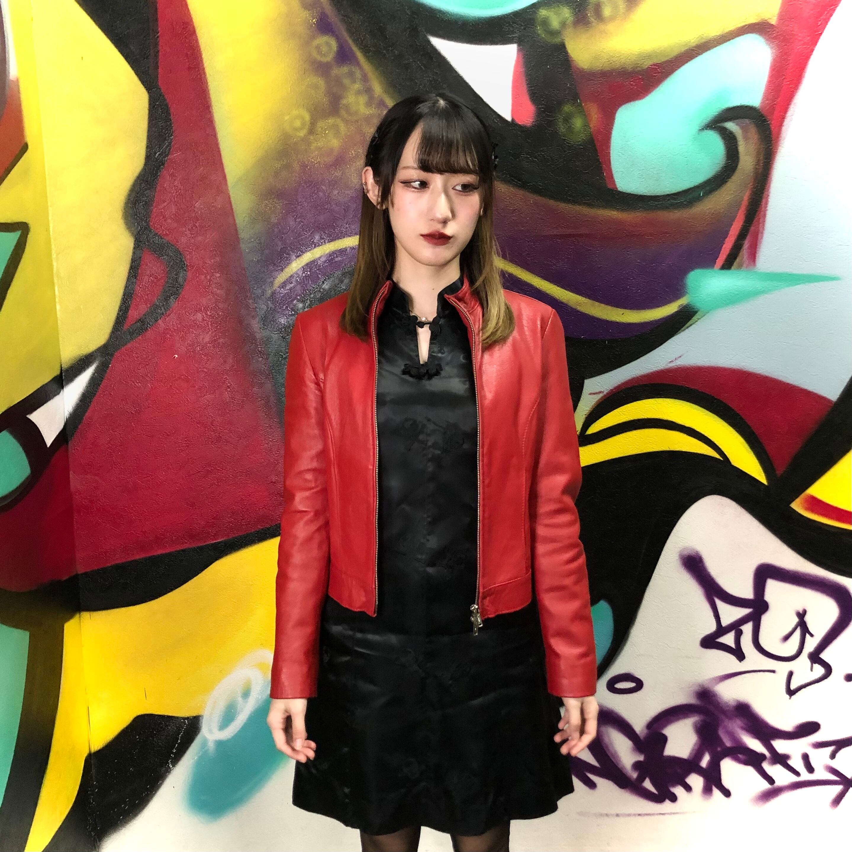 柔らかいラムレザーのジャケット。 スッキリシンプルなデザインです。 表記サイズS 肩幅38 身幅43 着丈47 袖丈58